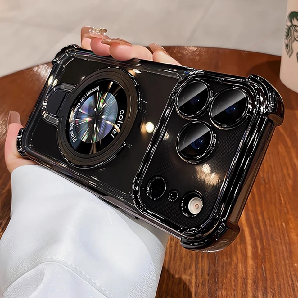 For Magsafe Wireless Charging Case For iPhone 17 Pro Max Air 14 15 Plus 13 12 16 Pro Transparent Plating Ring Holder Phone Cover