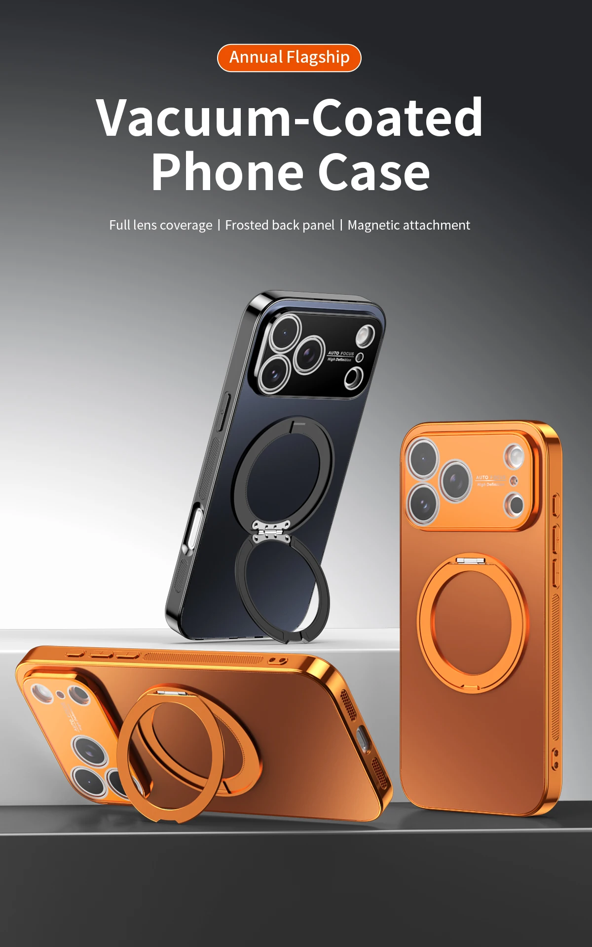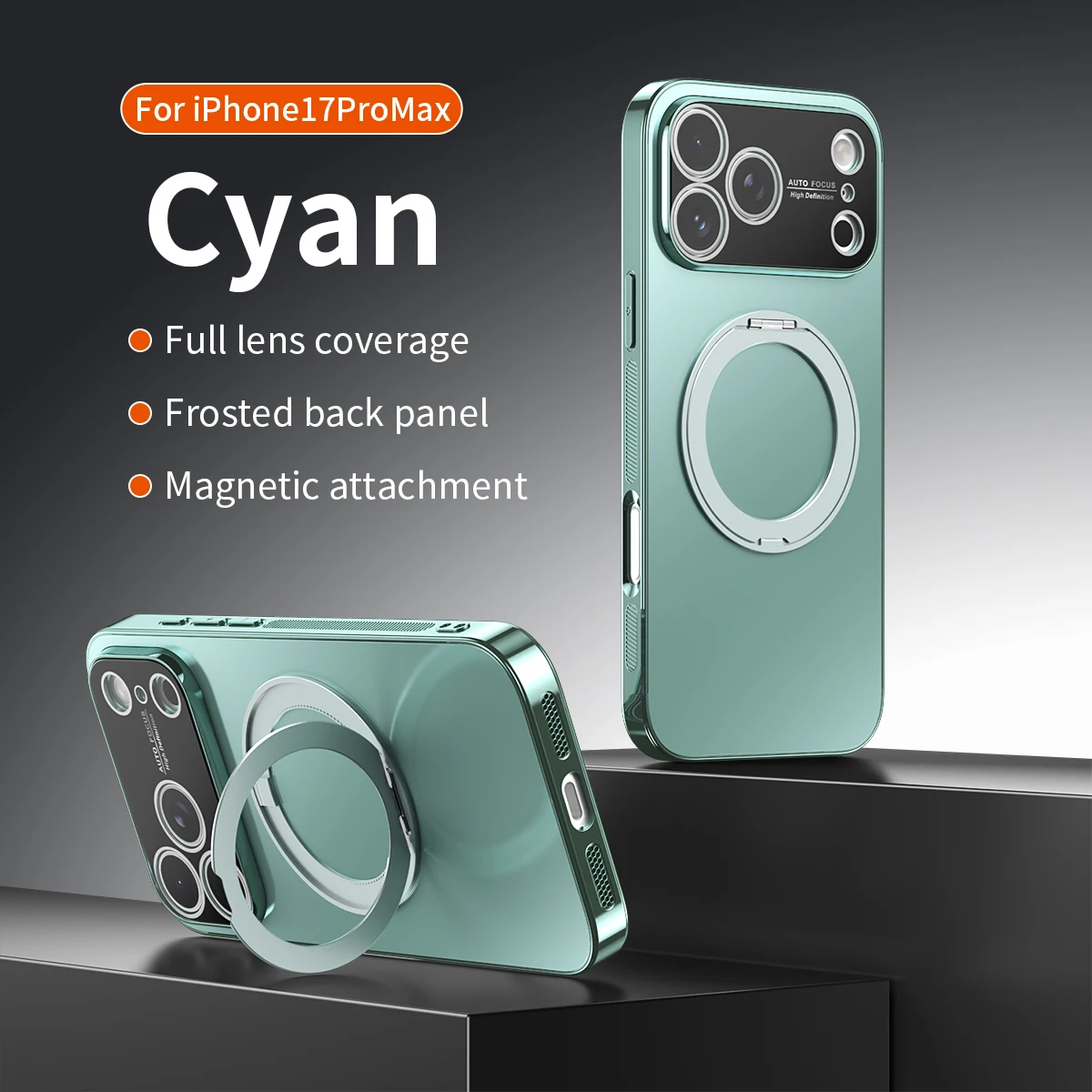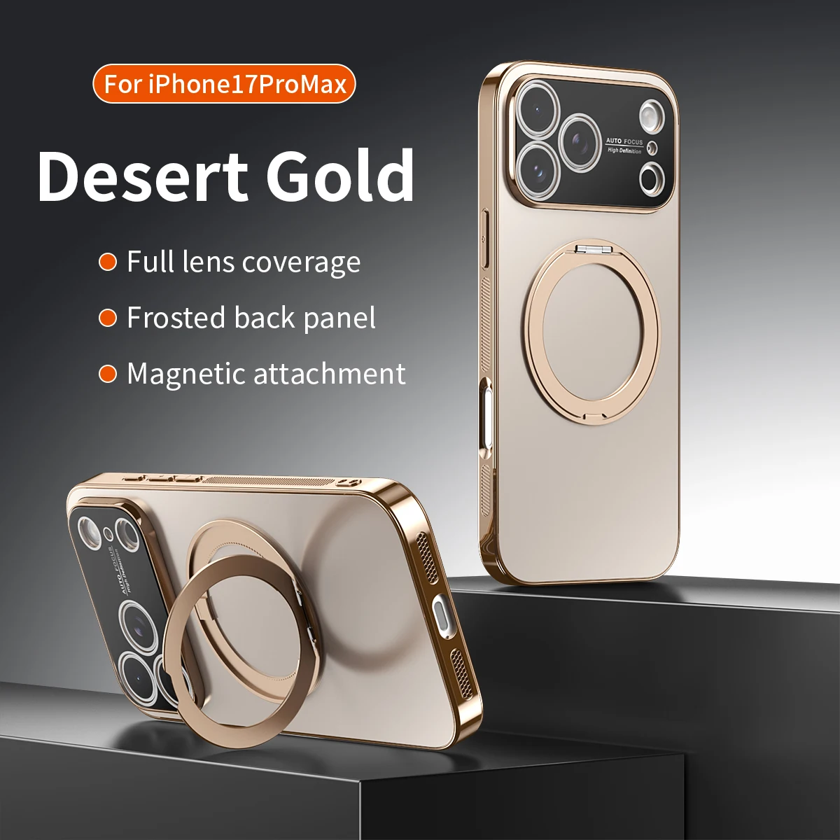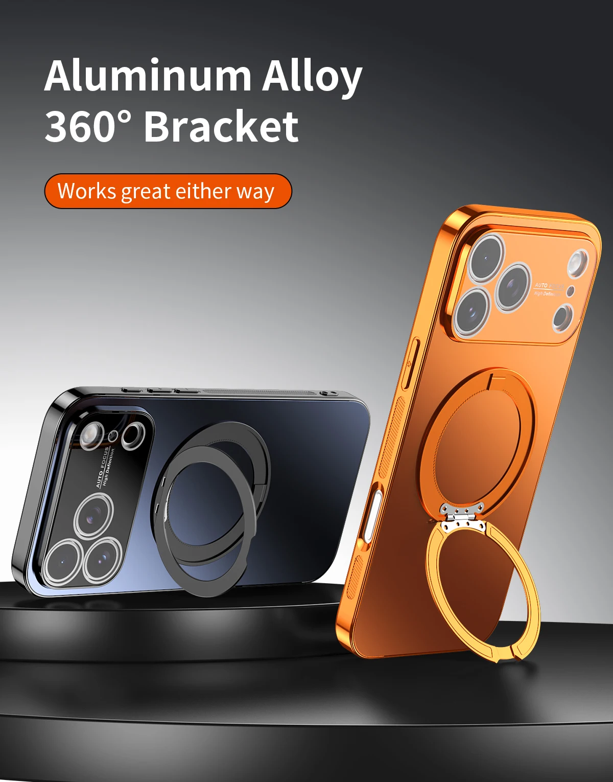 360° Rotating Magnetic Ring Stand Case For Magsafe for iPhone 17 16 15 14 13 Pro Max Air Matte Plating Shockproof Phone Cover