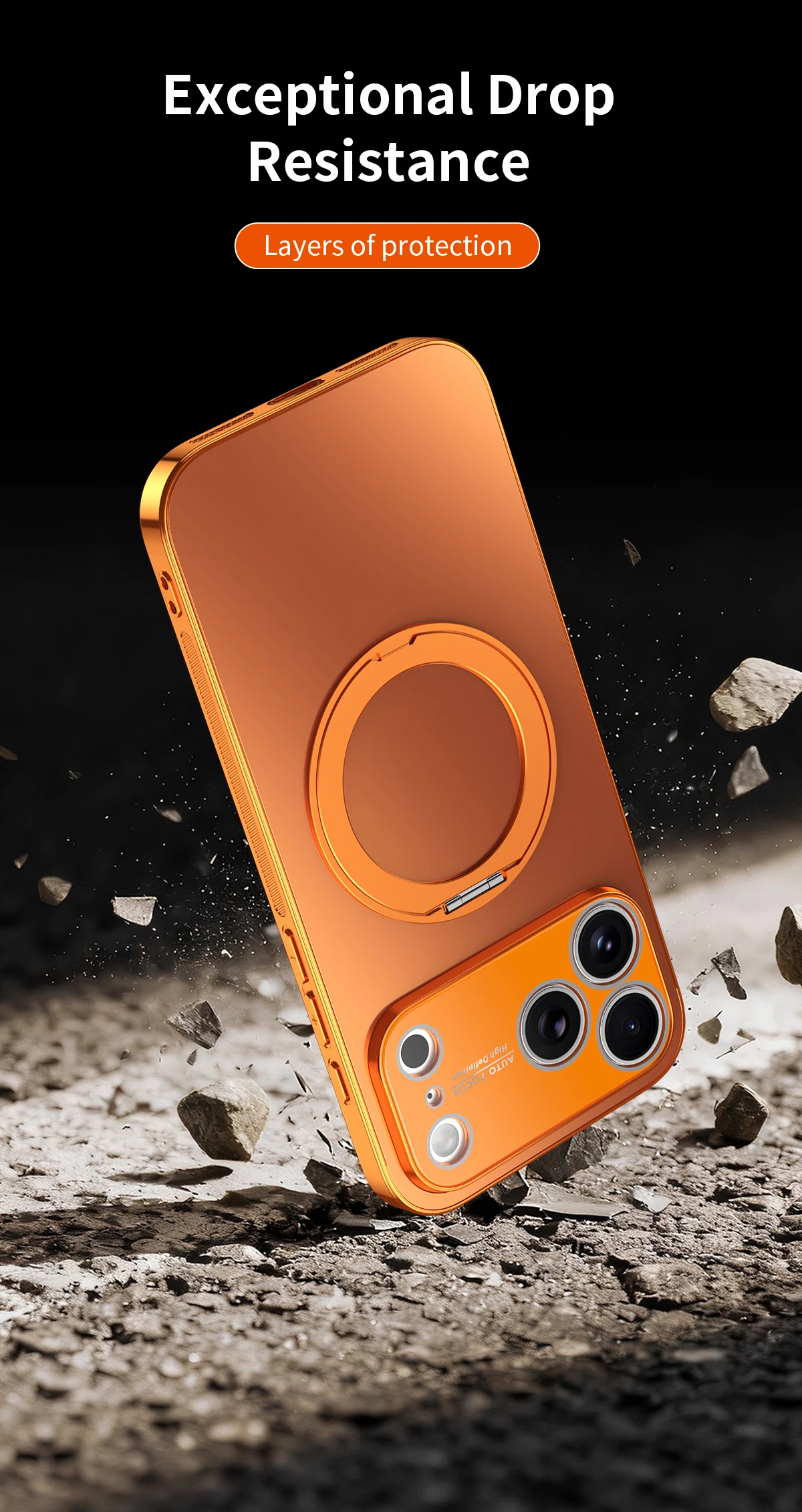 360° Magnetic Ring Stand MagSafe Case for iPhone 13–17 Pro Max | Matte Shockproof Cover