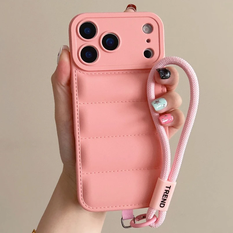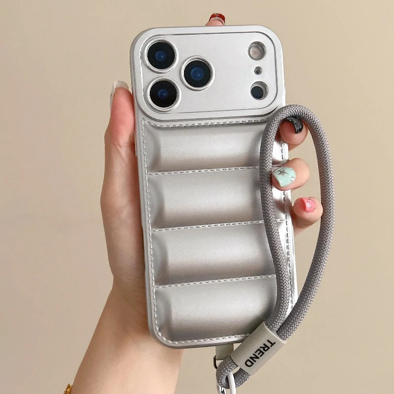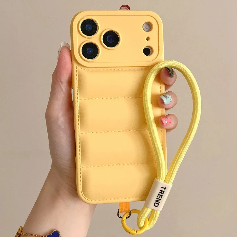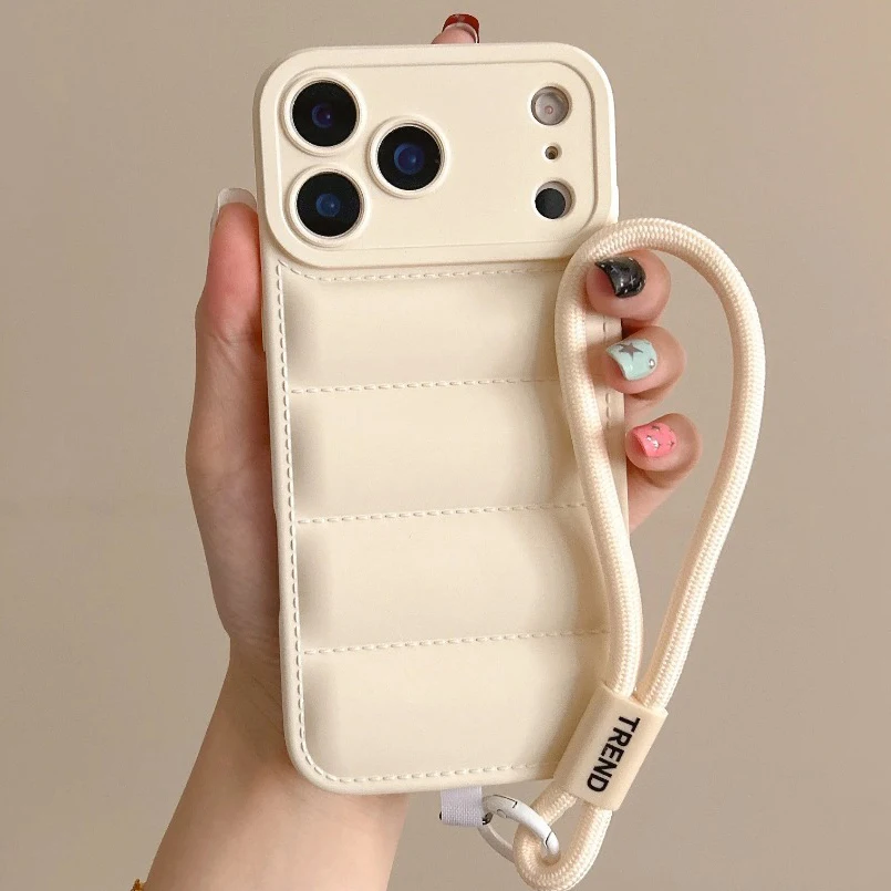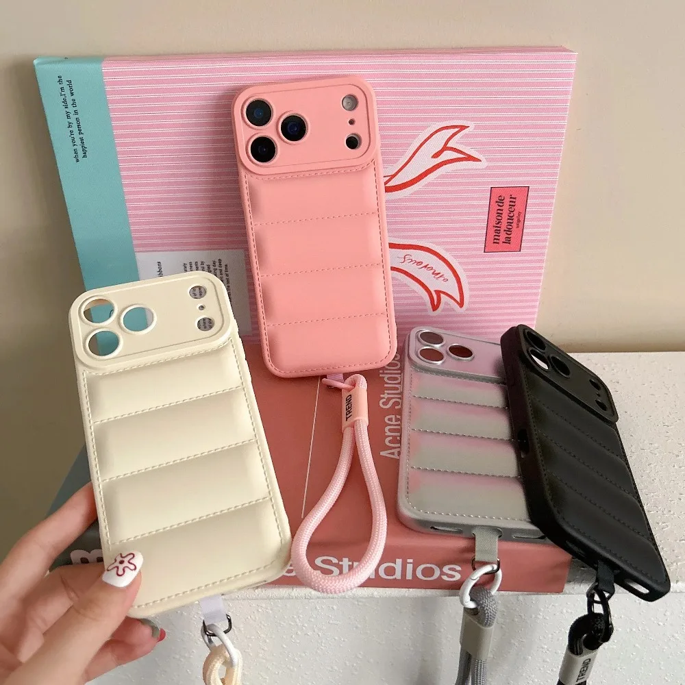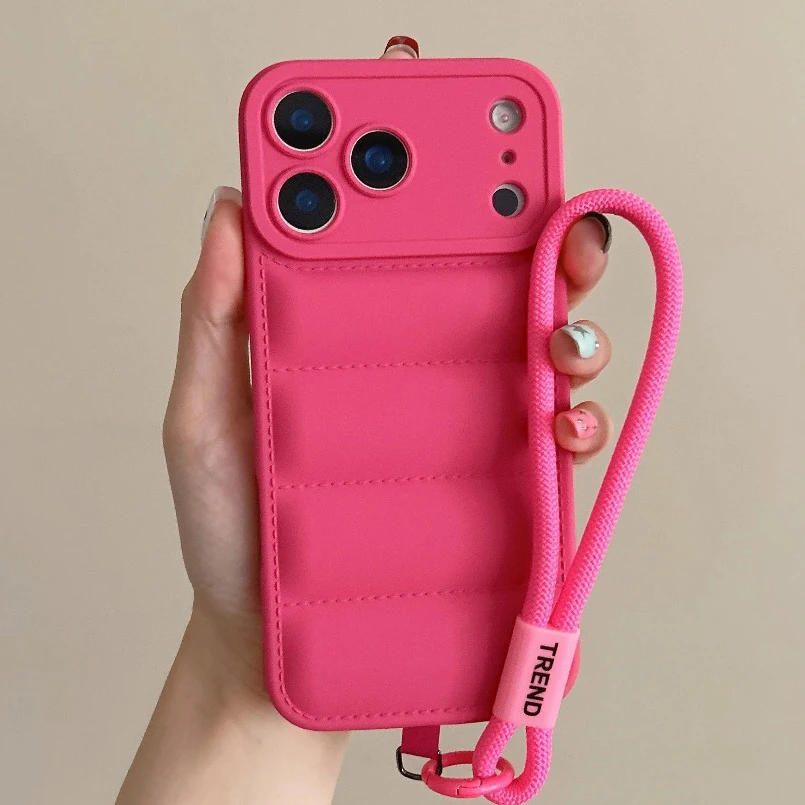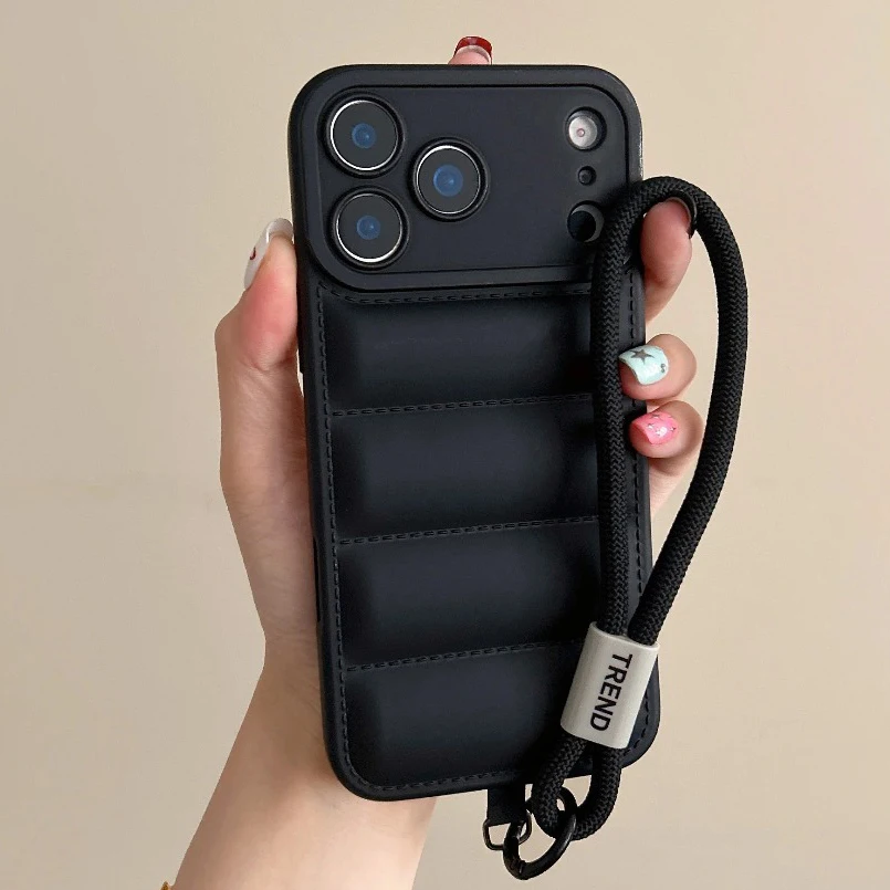 Luxury Jacket Silicone Phone Case For iPhone 17 16 15 14 13 Pro Max 17Pro Air Camera Protection Wrist Strap Shockproof Cover