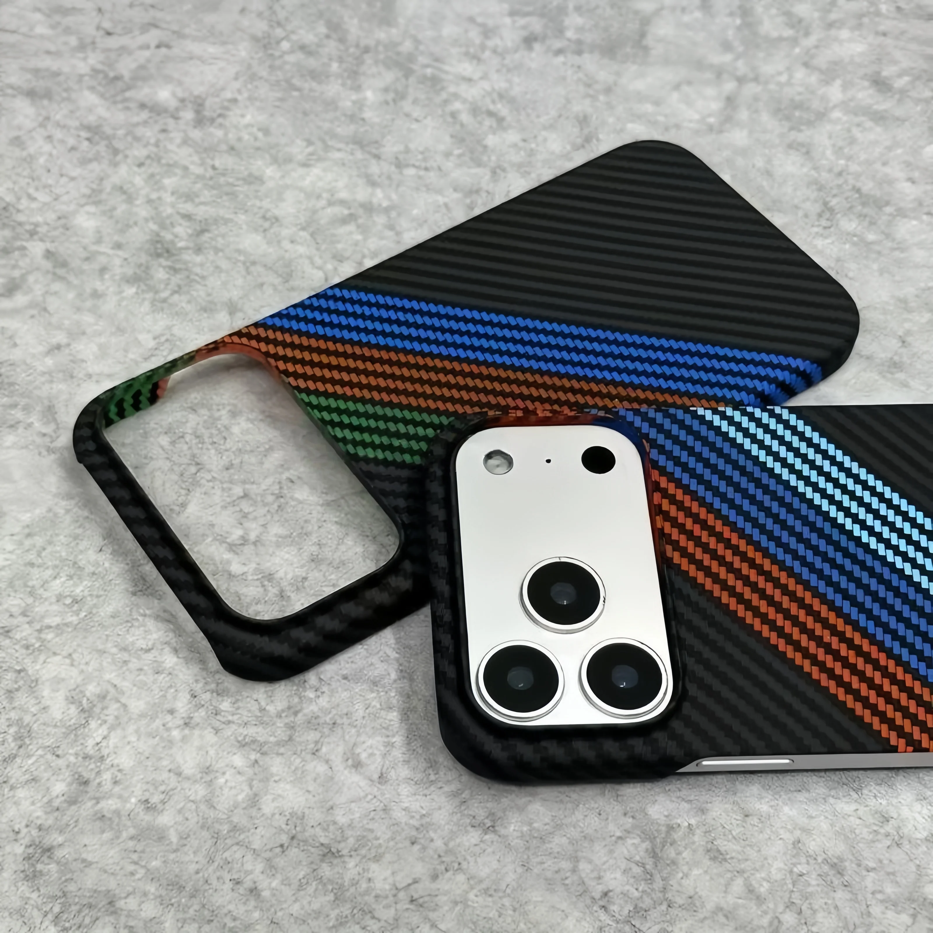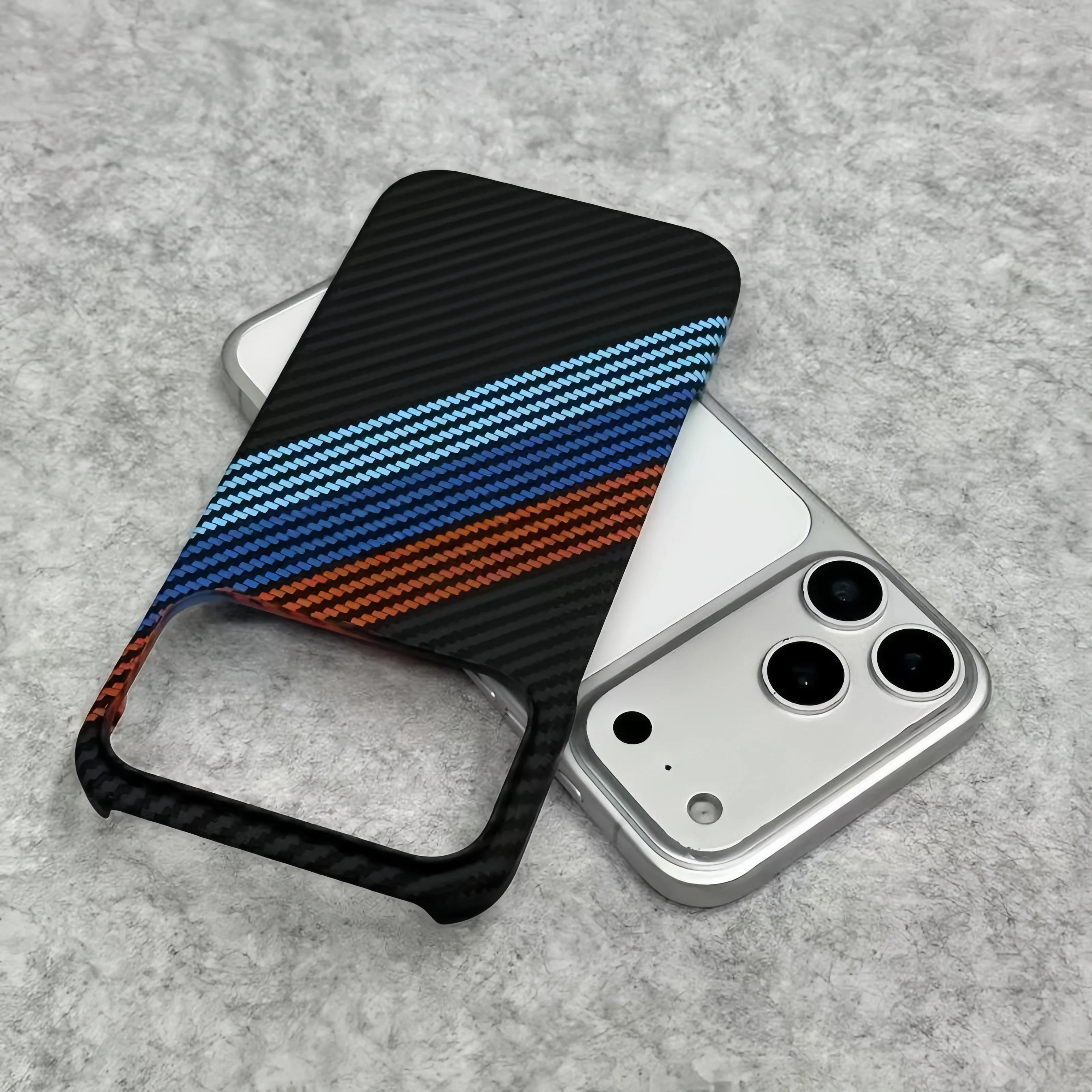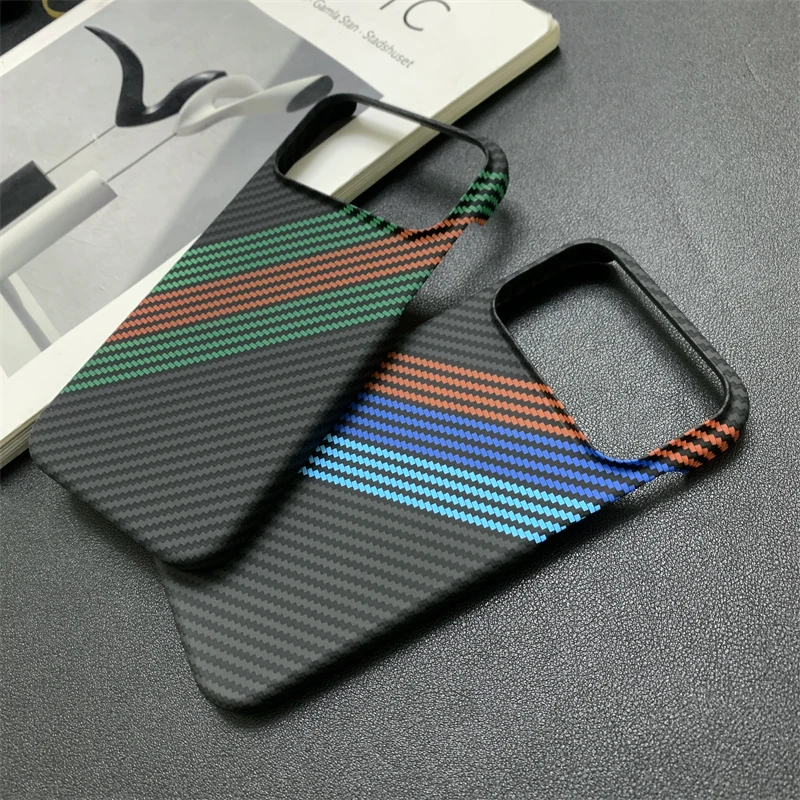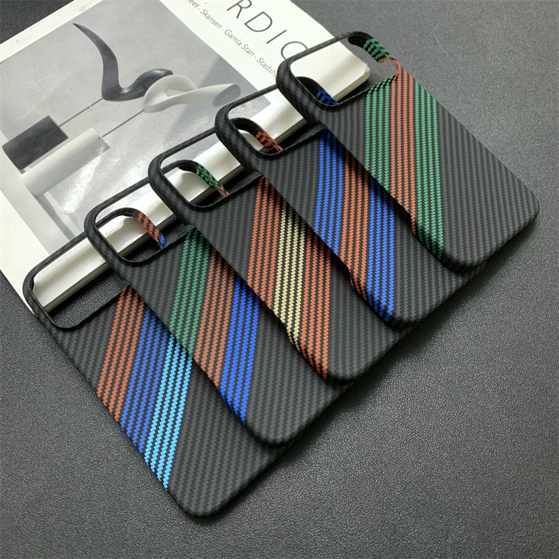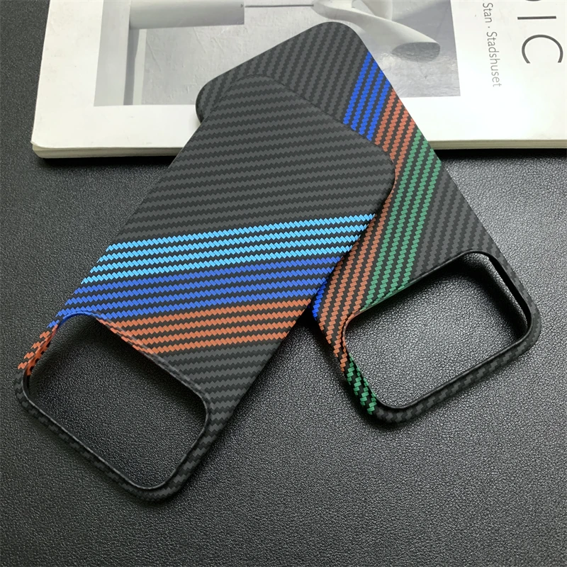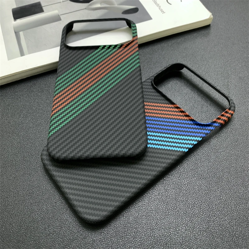 New Kevlar Carbon Fiber Texture Plastic Case For iPhone 17 16 15 14 13 Pro Max Contrast Color Shockproof Frameless Cooling Cover