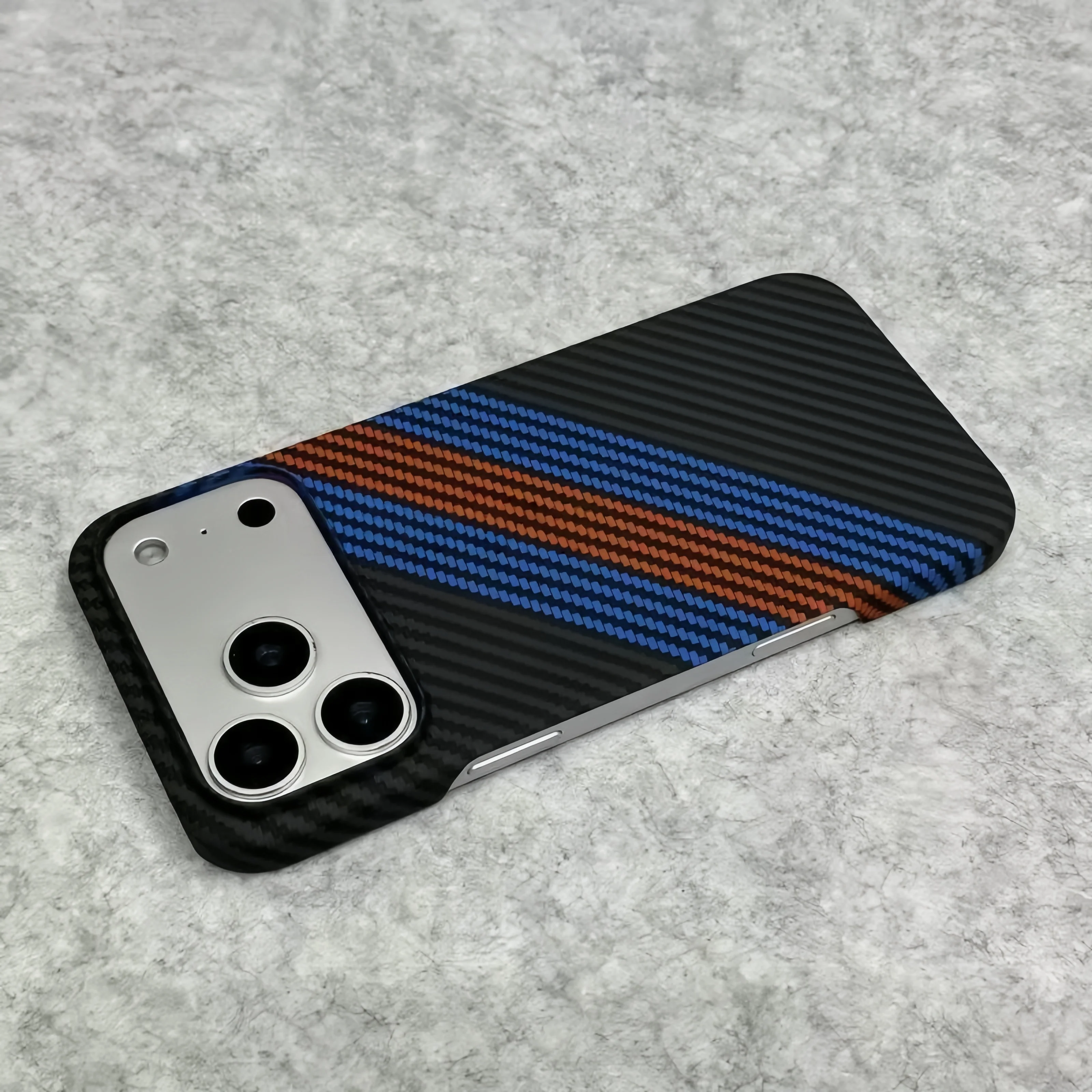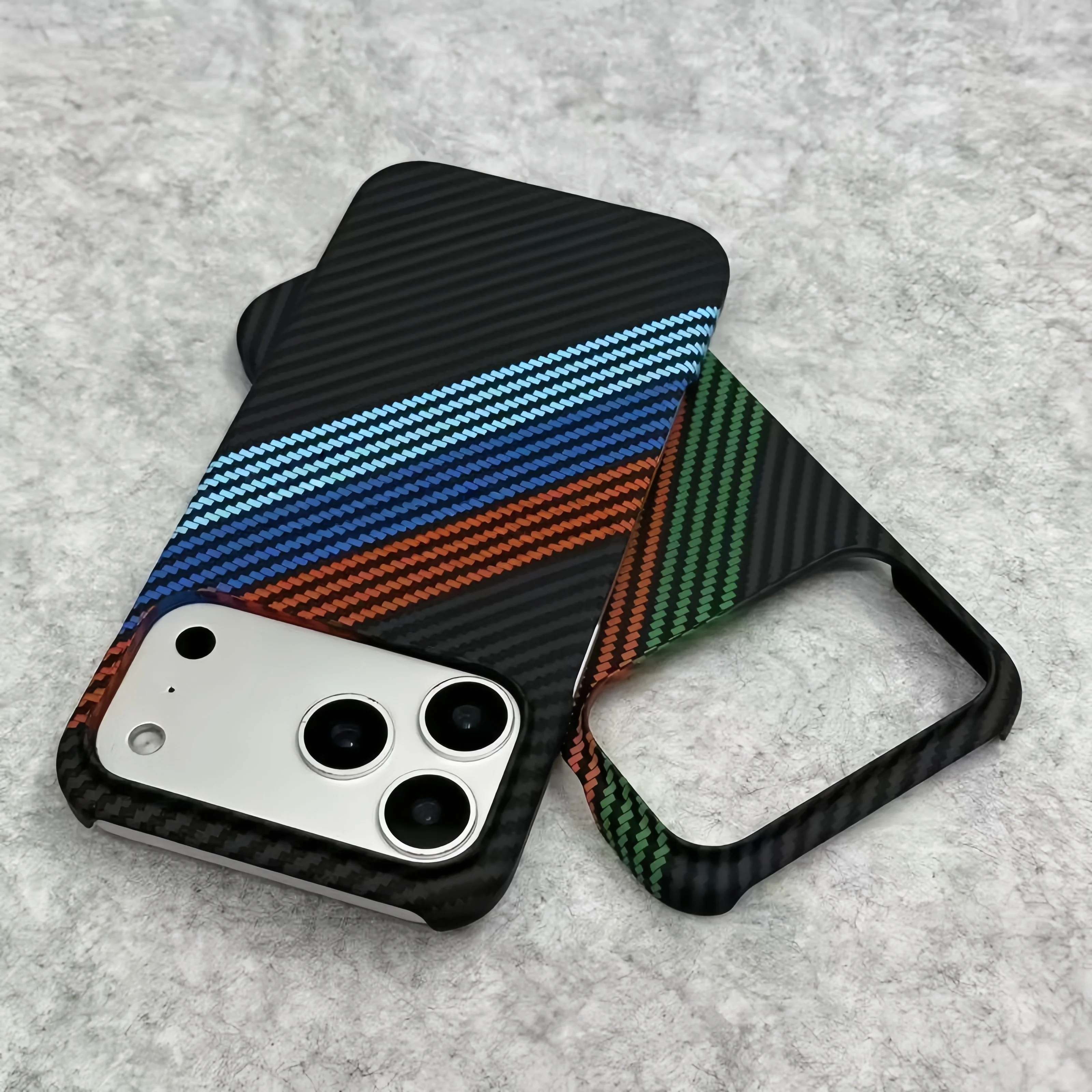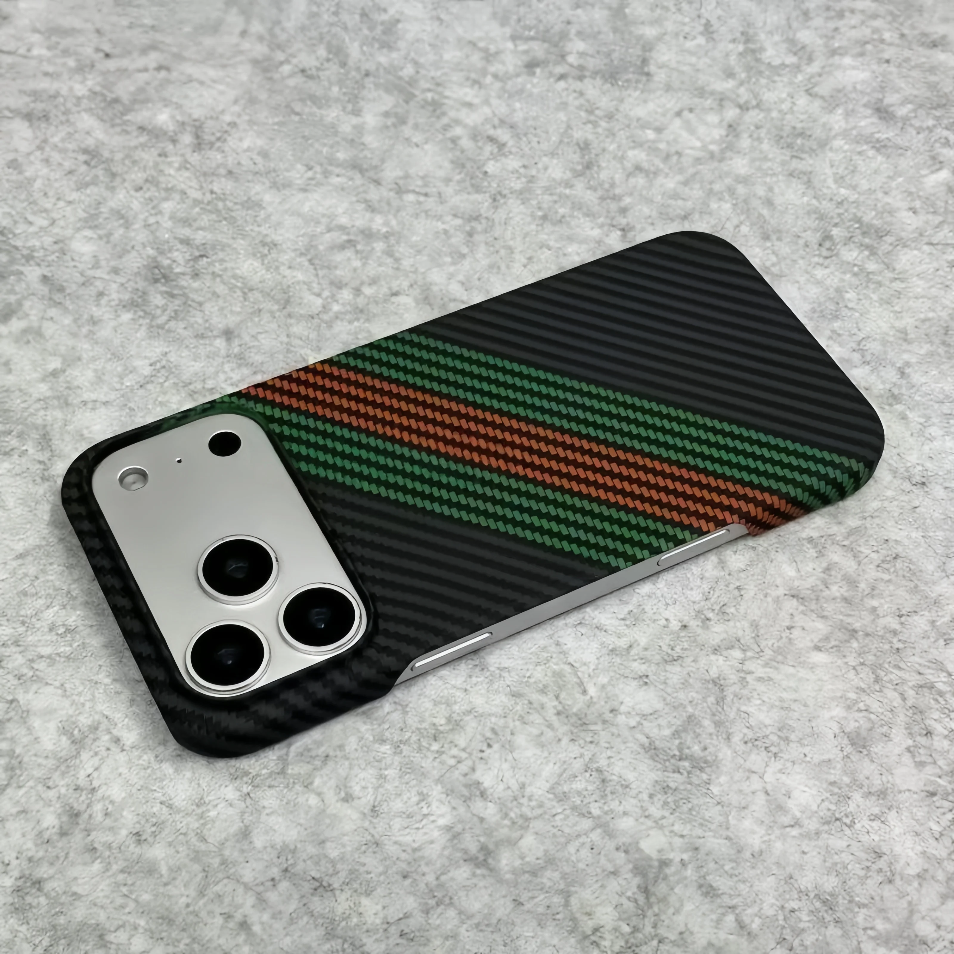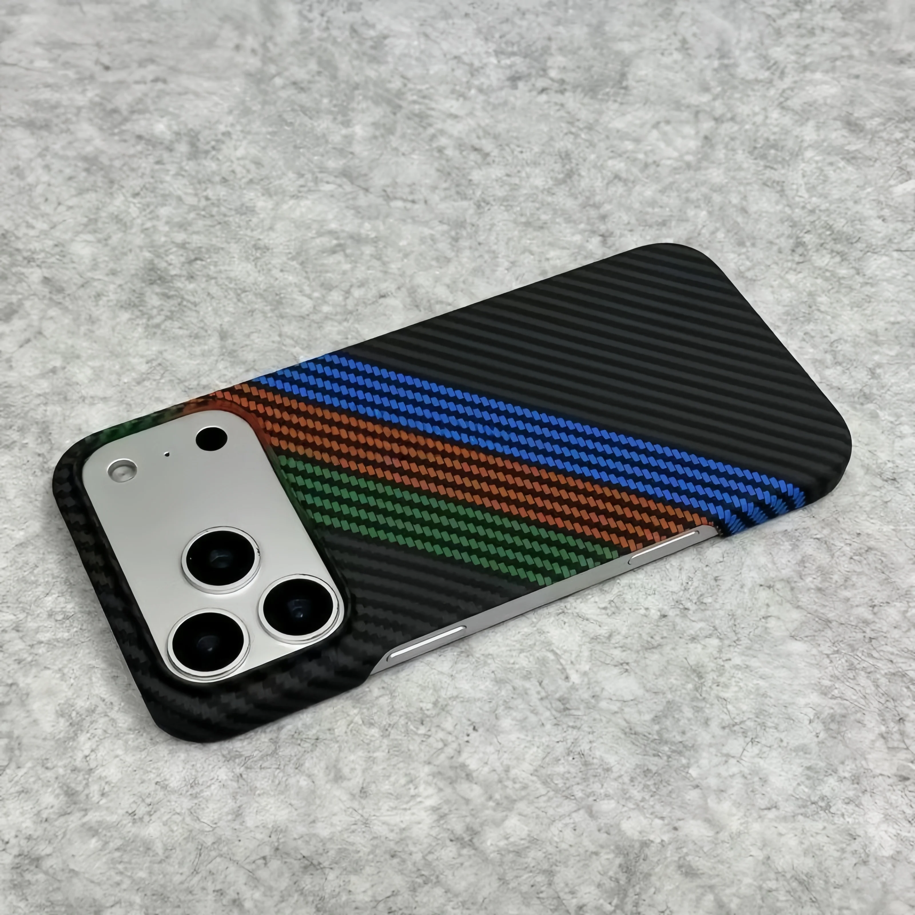 New Kevlar Carbon Fiber Texture Plastic Case For iPhone 17 16 15 14 13 Pro Max Contrast Color Shockproof Frameless Cooling Cover