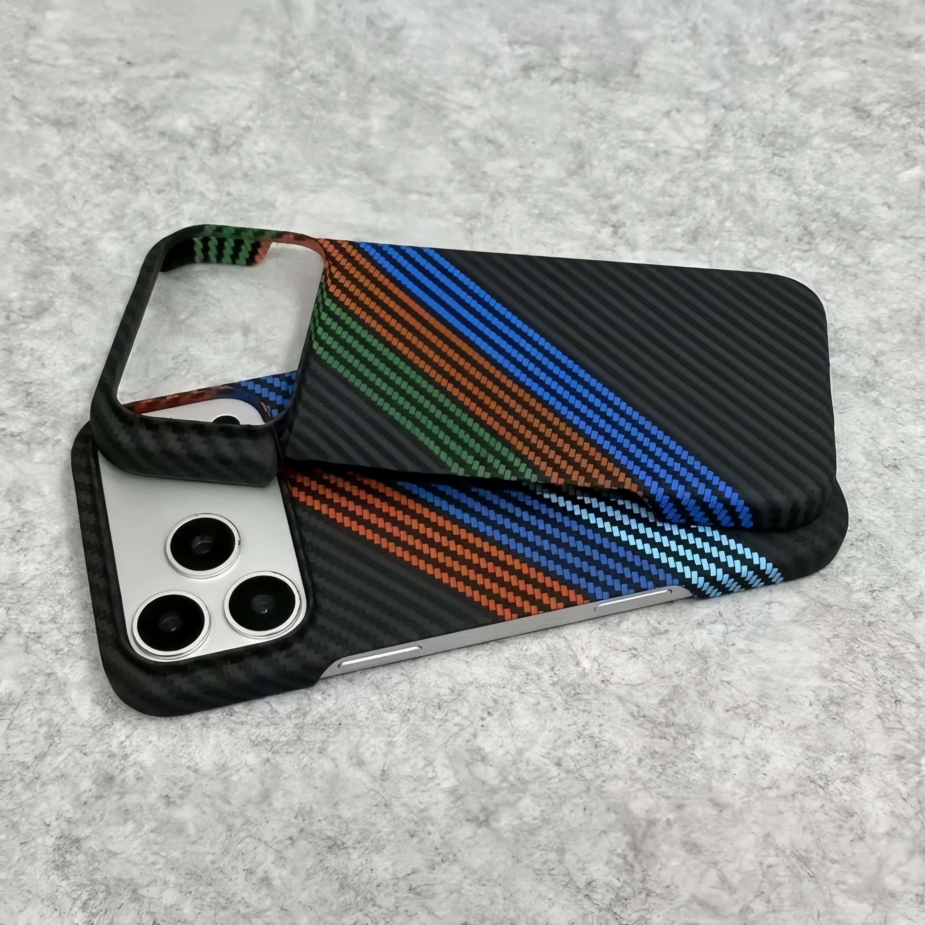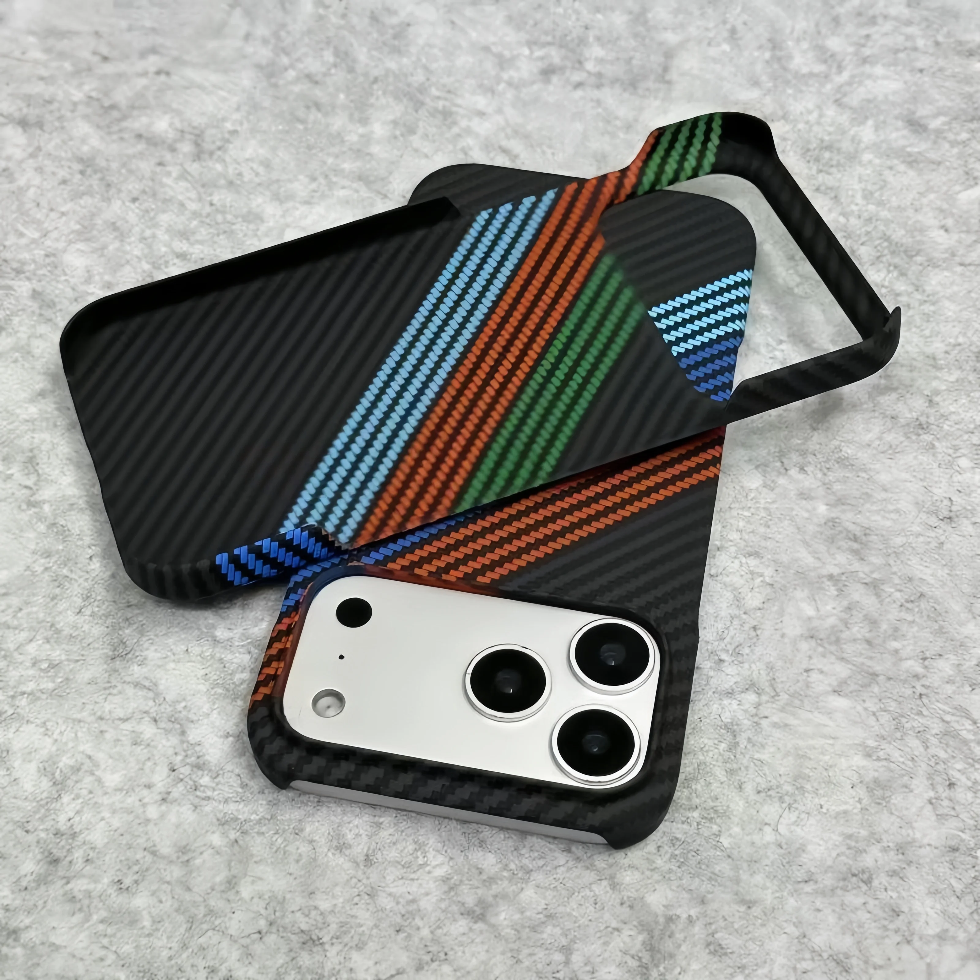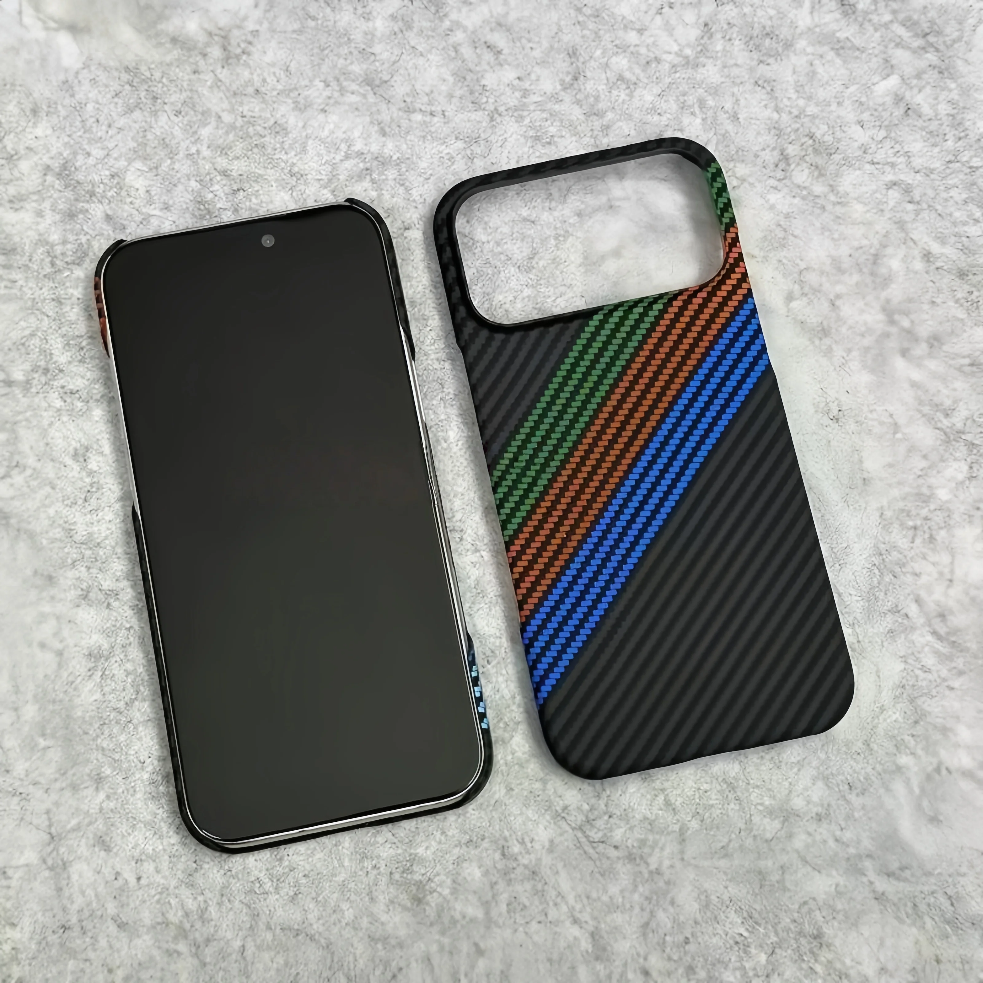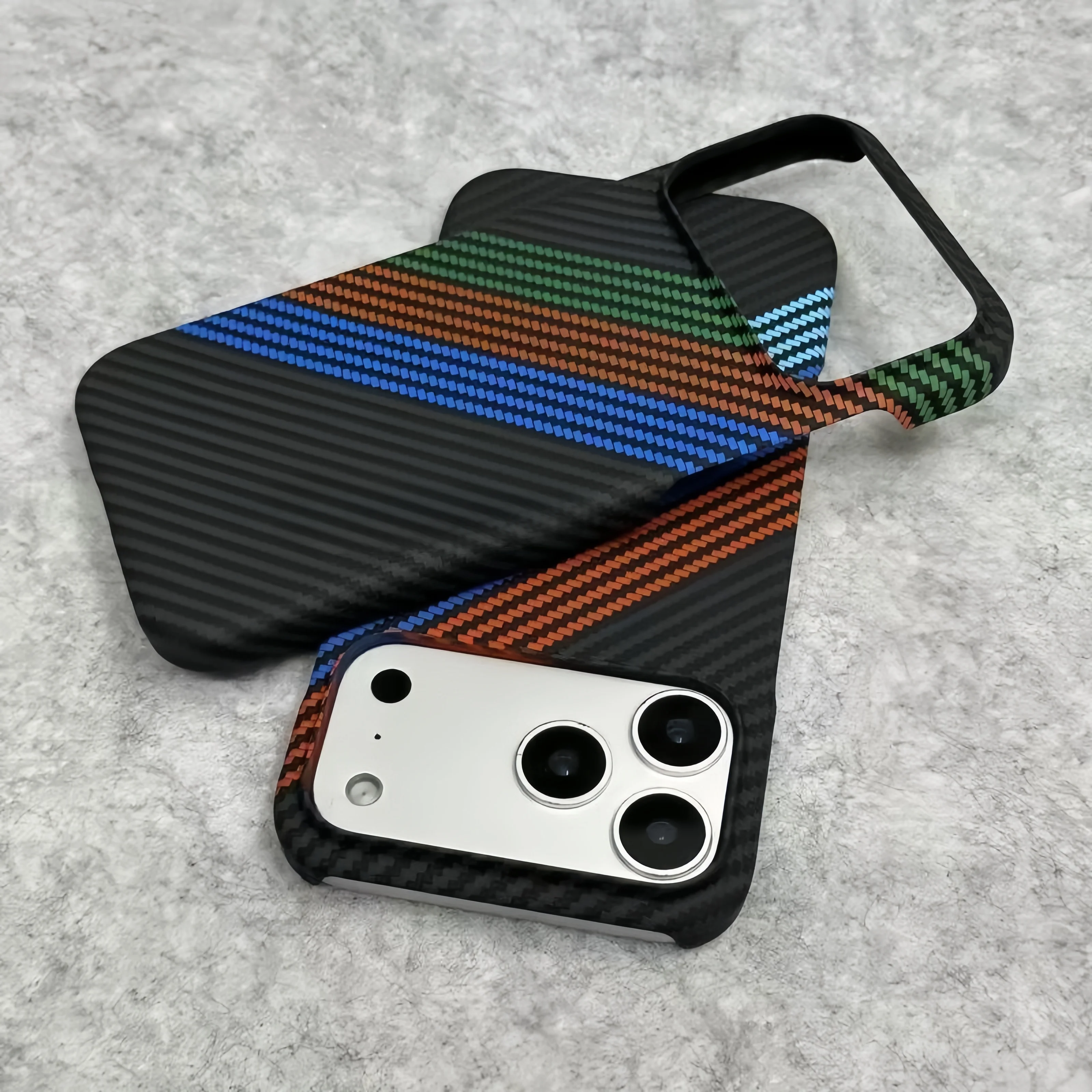 New Kevlar Carbon Fiber Texture Plastic Case For iPhone 17 16 15 14 13 Pro Max Contrast Color Shockproof Frameless Cooling Cover